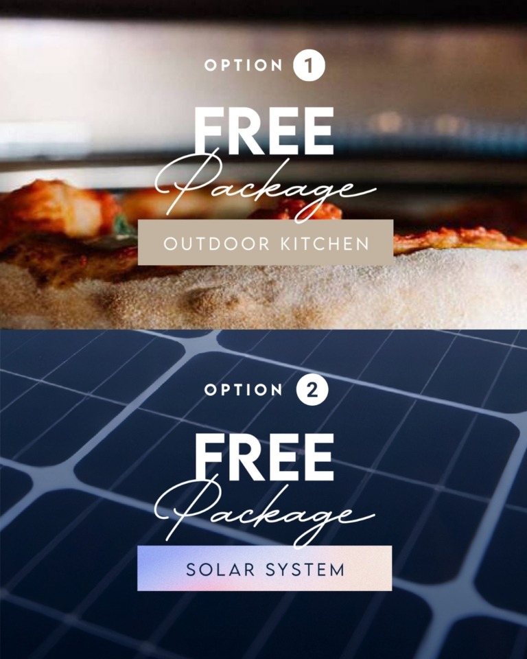 Choose from an Outdoor Kitchen or Solar System Package for your new home build. Read below for the full list of inclusions.